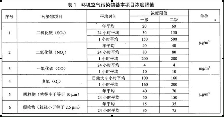 種種數(shù)據(jù)都表明,舊的空氣質(zhì)量標(biāo)準(zhǔn)已經(jīng)不能滿足人們的社會(huì)生活,于是就在2012年2月份,我國(guó)發(fā)布了GB 3095-2012環(huán)境空氣質(zhì)量標(biāo)準(zhǔn),新標(biāo)準(zhǔn)提出了其監(jiān)測(cè)是包括PM2.5在內(nèi)的6項(xiàng)空氣質(zhì)量指標(biāo)監(jiān)測(cè),并且以表格的形式,讓我們更加直觀的了解了環(huán)境空氣污染物基本項(xiàng)目濃度限值。